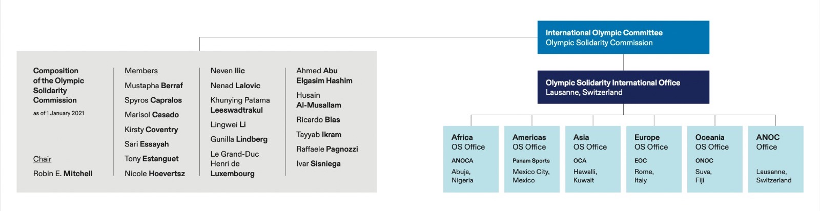 The Olympic Solidarity Programme is governed by the Olympic Solidarity Commission. The Commission President is Dr Robin Mitchell of Fiji.