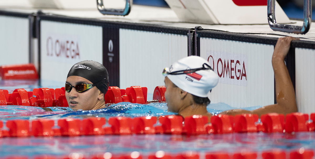 Kihleng was beaming with pride as she swam a time of 28.81 seconds at the Paris La Defense Arena.