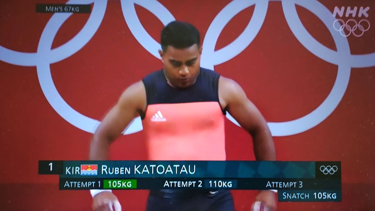 Kiribati’s gold medal hopeful Ruben Katoatau lifted a total of 245kg – snatching 105 kg and clean and jerked 145kg – earning him fourth place in the Group B competition. Group A competition was underway Sunday night to determine the top medal placings.