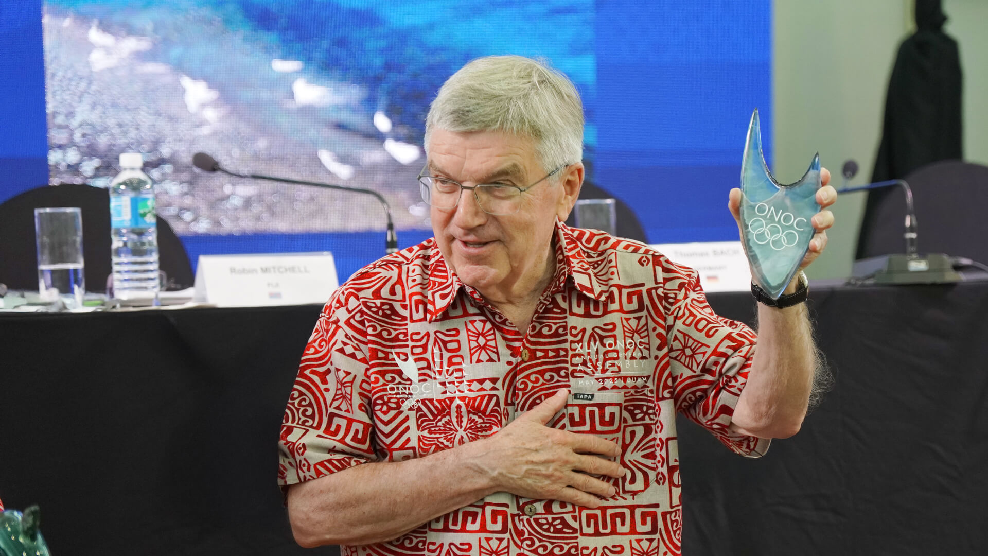 The Oceania National Olympic Committees (ONOC) paid tribute to International Olympic Committee (IOC) President Dr. Thomas Bach with a specially commissioned commemorative gift, presented during the 45th ONOC Annual General Assembly in Guam.