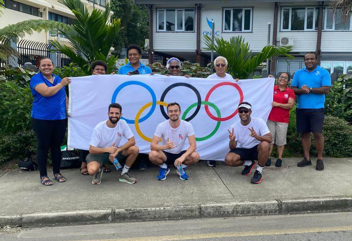 Led by ONOC President Robin Mitchell, the Oceania National Olympic Committees joined Ambassador Francois-Xavier Leger, French ambassador to Fiji, Kiribati, Nauru, Tonga and Tuvalu and the Fiji Association of Sport and National Olympic Committee (FASANOC) in a 10-km Run-a-thon in Fiji’s capital, Suva to begin the global relay.