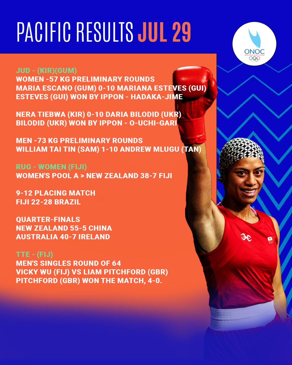 The Pacific nations faced a series of challenging yet inspiring moments on 29 July at the Olympic Games. The day was marked by notable performances across judo, rugby, and table tennis, demonstrating the resilience and competitive spirit of our athletes.