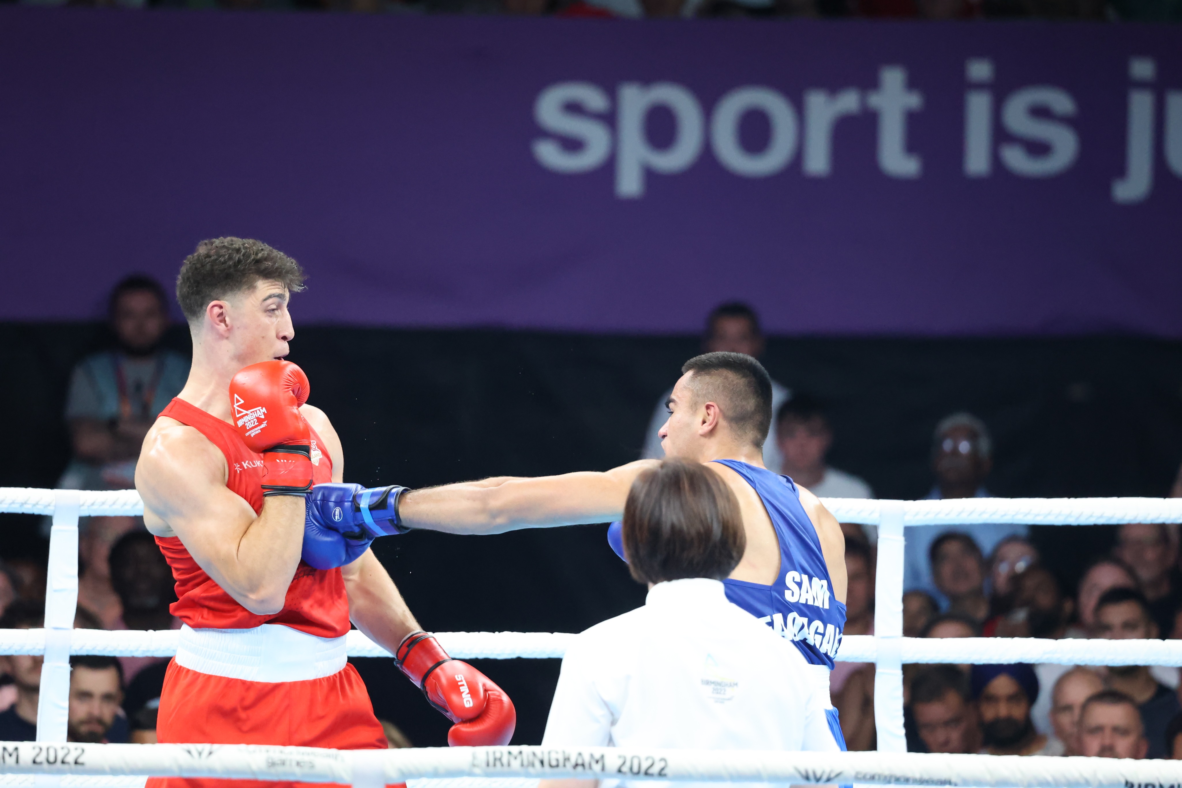 With a packed-out stadium both boxers walked into the stadium with swagger, and with a Samoa contingent in the stands Ato received a glorious welcome into the arena. Giving his coach a hug before his bout, Ato attempted to improve on the Silver he won at the 2018 Gold Coast Commonwealth Games.