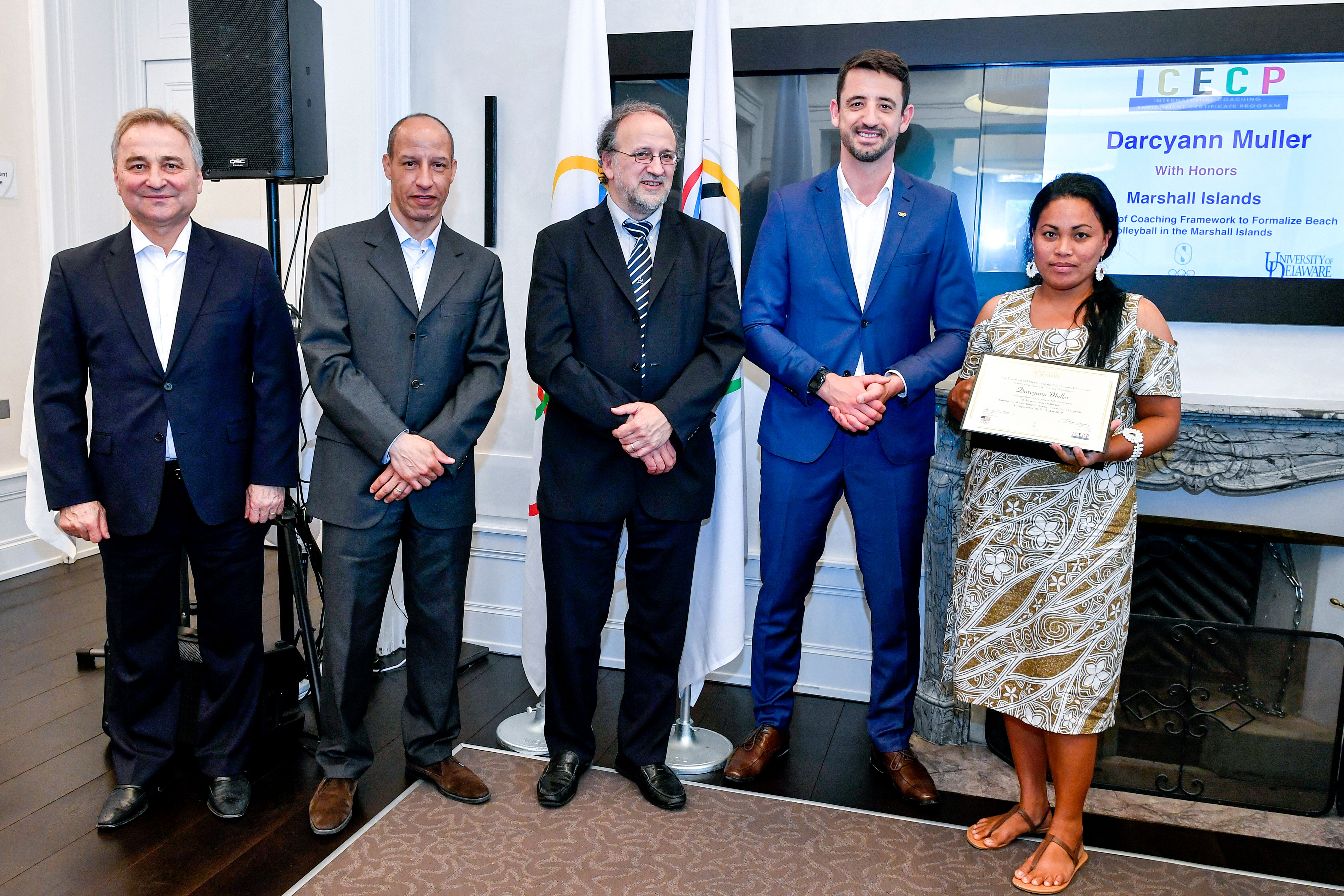 The three participants were honored with the top-class project award, for the following projects: “Development of Coaching Framework to Formalize Beach Volleyball in the Marshall Islands,” Darcyann Muller; “Developing a Level One Gymnastics Coach Curriculum and Certification Program for St Vincent and the Grenadines,” Laprise Harris Williams; and “Team PNG Elite Performance Coach Education Program in Papua New Guinea,” Chris Amini.