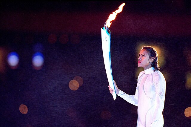 Iconic indigenous Australian 400m gold medallist, Cathy Freeman, lights the torch at the 2000 Sydney Olympic Games in what was Oceania Continent's first and only hosting of an Olympic Games to date.