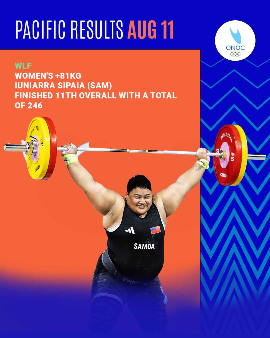 On the final day of competition at the Olympic Games Paris 2024, our last athlete from the Pacific region, Iuniarra Sipaia of Samoa, took to the stage in the Women’s +81kg Weightlifting event.