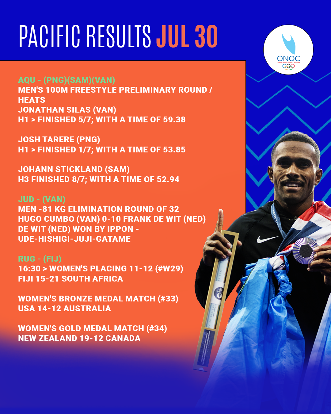 Our athletes from the Pacific NOCs showcased their talents and determination across various events on 30 July at the Paris 2024 Olympic Games.